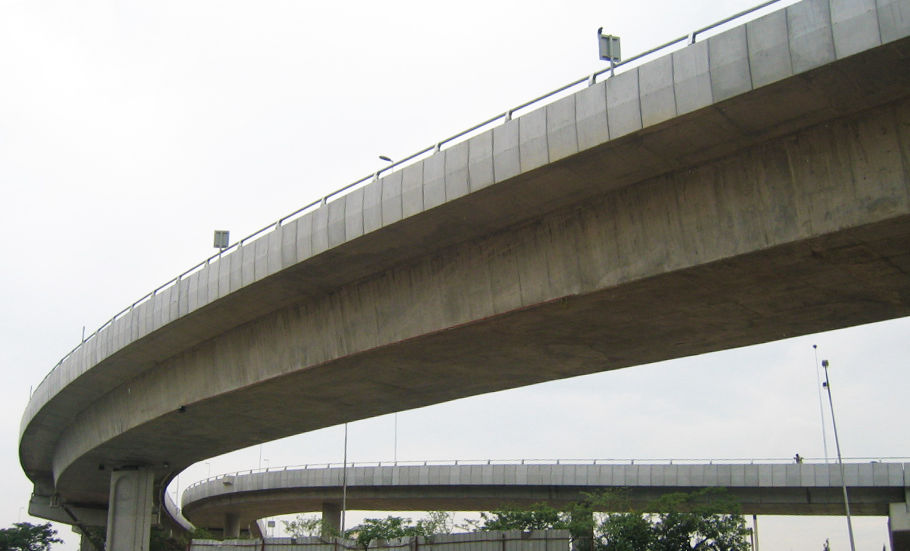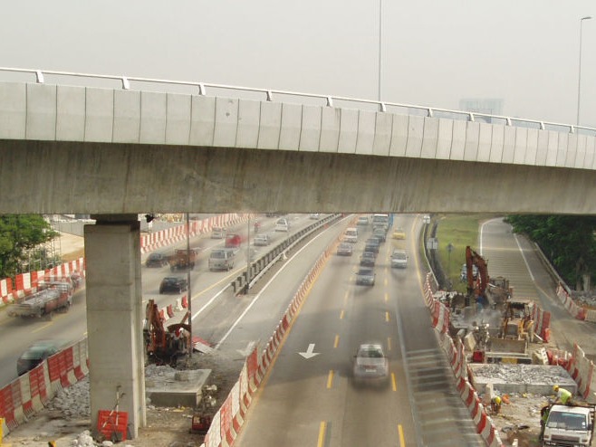 Cast in-situ box girder bridge over KL – Seremban Highway construction using temporary steel truss for traffic clearance below